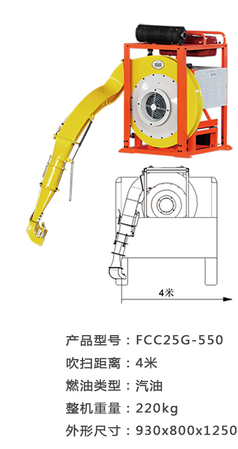 以柴油機或汽油機為動力,專用高壓離心風機,結構緊湊,體積小,重量輕