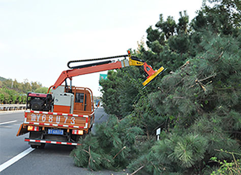 使用1.8噸輕卡承載,可修剪中分帶綠、公路右側高枝粗枝: