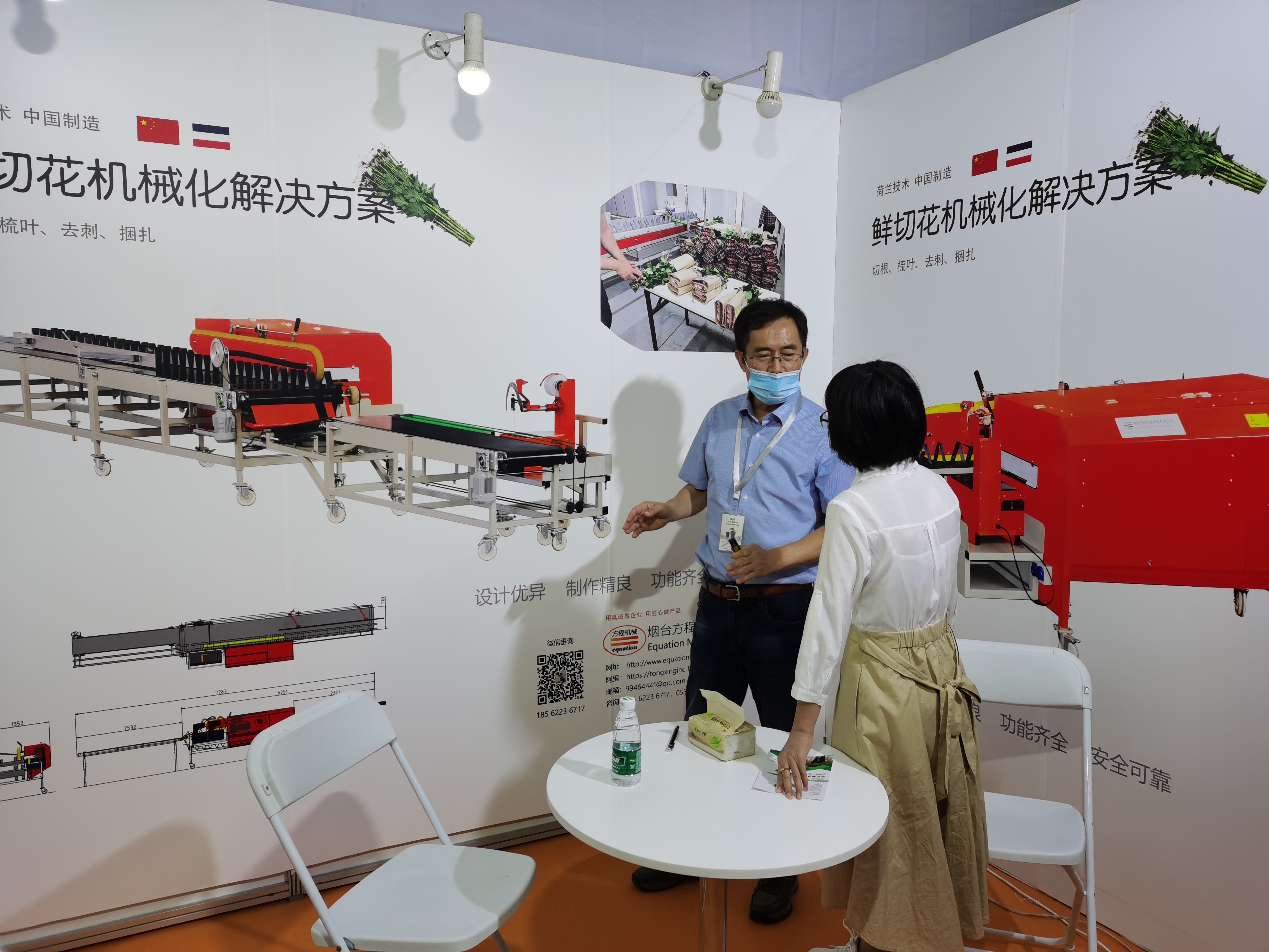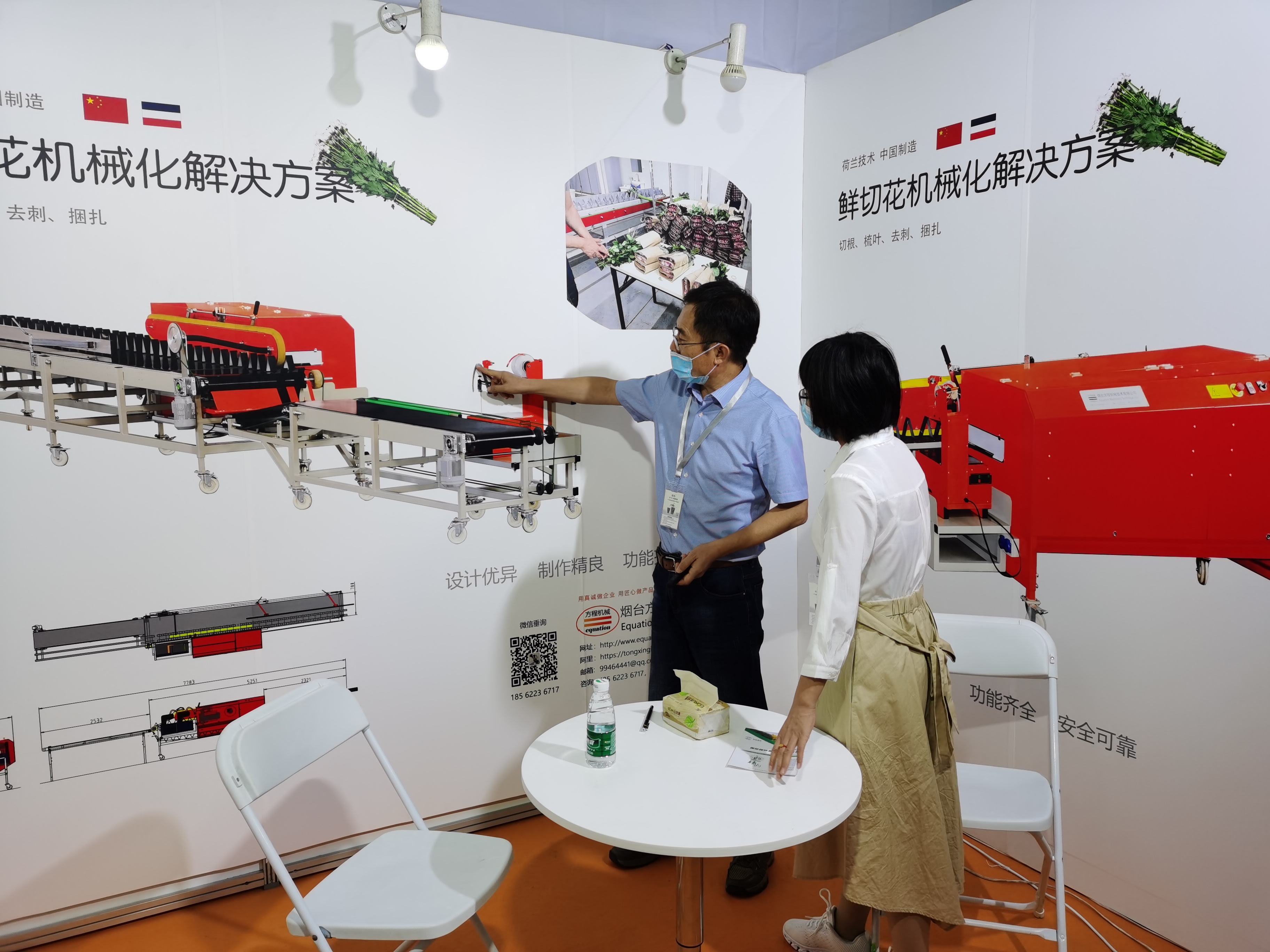 我公司參加了此次展會,在會上我們展示了鮮切花機械化解決方案和蔬菜流水捆扎機兩個產品。鮮切花生產過程中切根、去葉、梳理、捆扎等工序全部實現了自動化生產,減少了人工,提高了效率,節(jié)約了成本;蔬菜流水捆扎機實現了商超、蔬菜生產企業(yè)等客戶蔬菜捆扎全部自動化,得到了前來了解、洽談的客戶好評和認可。